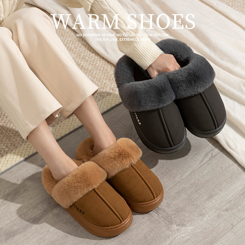 綿のスリッパの女性の秋冬の毛のスリッパのカップルの家の室内の月子の保温とベルベットの厚い綿の靴の外で着る