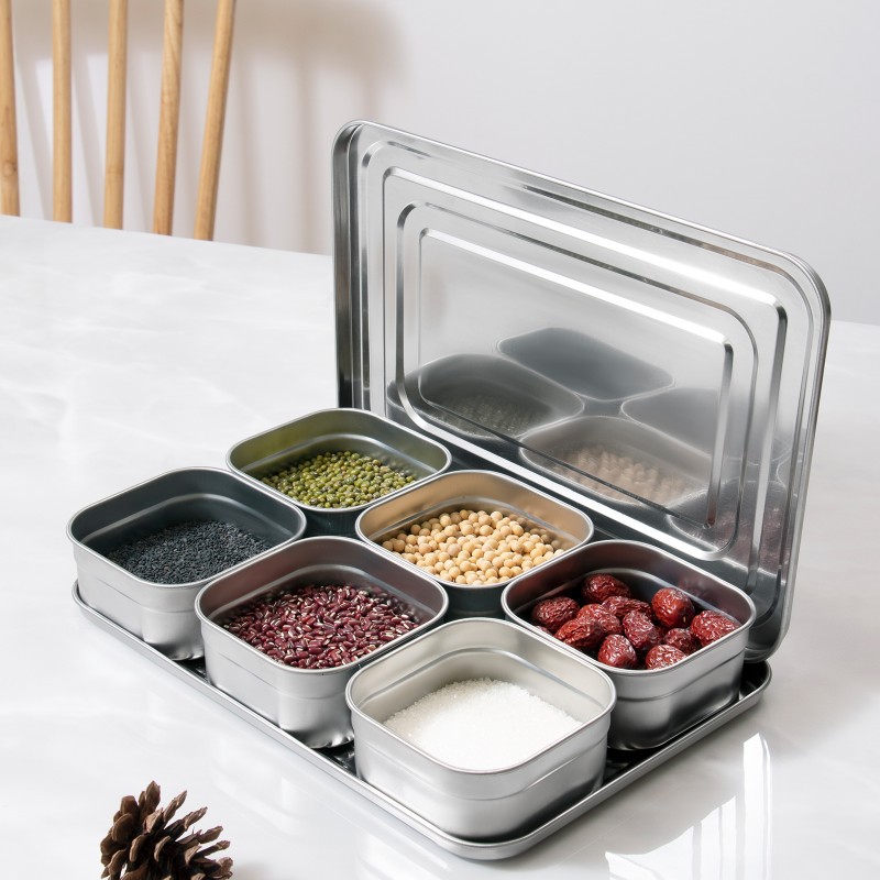 ステンレス製蓋付き調味料ボックス、6区画/8区画、業務用キッチン、氷粉材料ボックス、収納ボックス、屋台用調味料ボックス