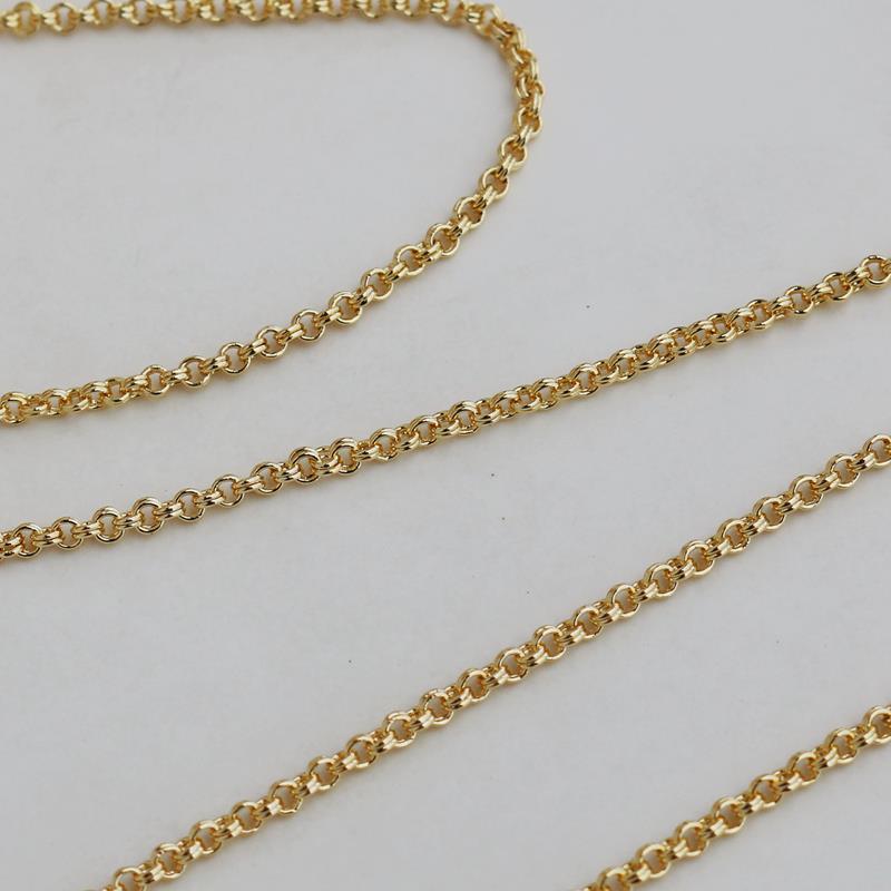 14k包みの金の保色のボールのチェーンの双股の丸いoのチェーンの2mmの2層のoのチェーンの環は互いにボタンをかけますdiyのチェーン