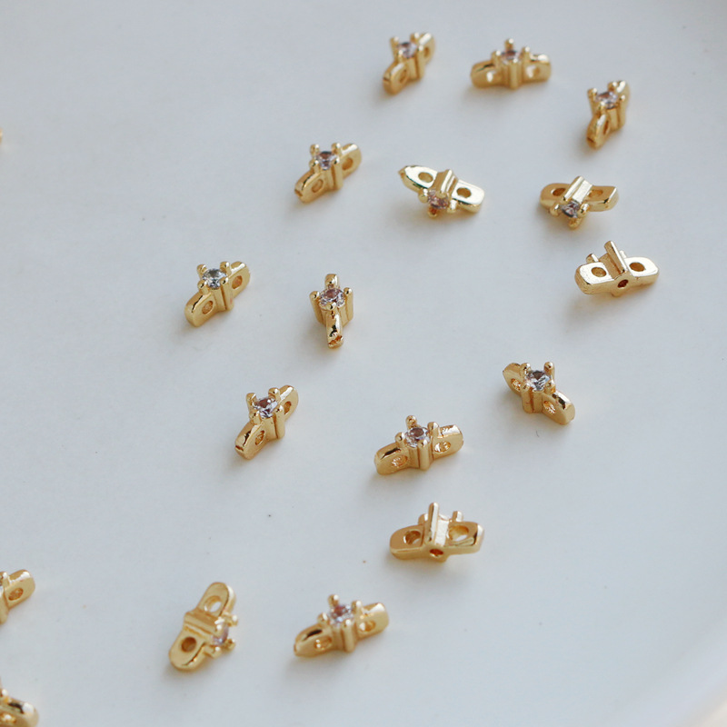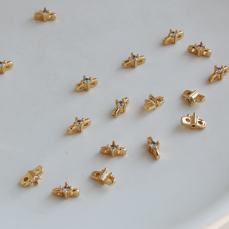 14k包みの金の保色のマイクロはジルコンの双穴を挿して仕切りの十字の双線の手の数珠の材料のdiyを掛けます。