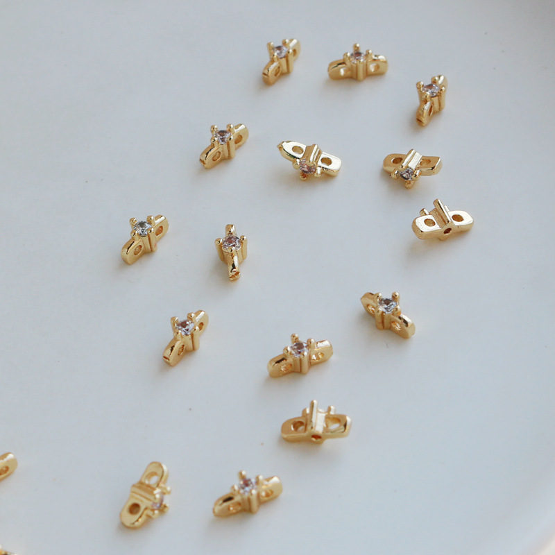 14k包みの金の保色のジルコンの双穴のボタンの仕切りの十字の双線の手の数珠の材料のdiyの手作りのアクセサリー