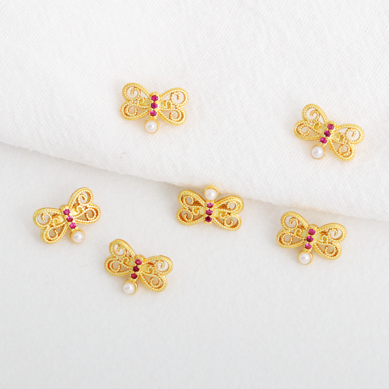 18K ダマスクゴールドフィルドカラーリジジルコンバタフライバレルビーズつぼみイヤリング DIY 手作りジュエリーイヤリングタッセルペンダント