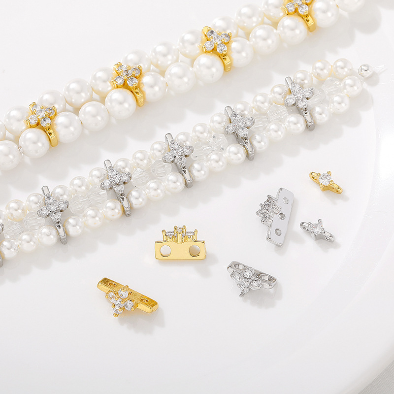 保色微装飾ジルコニウム二列多列四葉草蝶蝶結び四角星真珠手列DIY手列