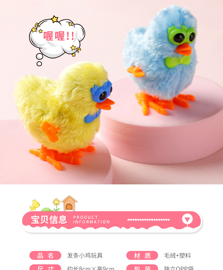 发条小鸡玩具毛绒玩偶儿童跳跳鸡小鸡仔黄鸡上弦上链宝宝婴儿电动