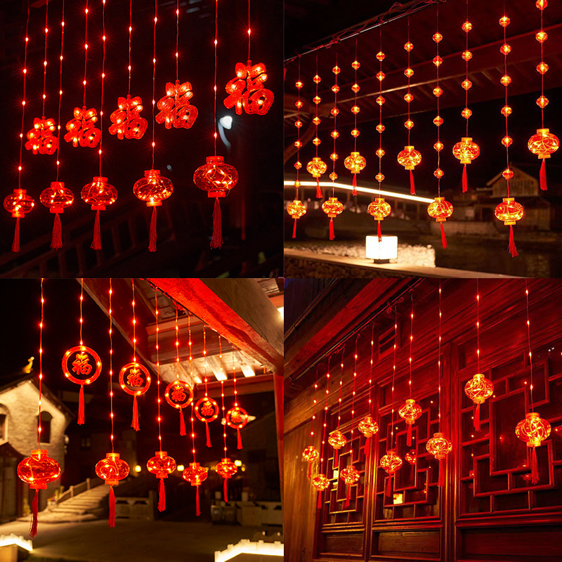 正月飾り提灯カーテン灯旧正月提灯発光福字部屋ベランダ庭園おめでたい雰囲気灯防水