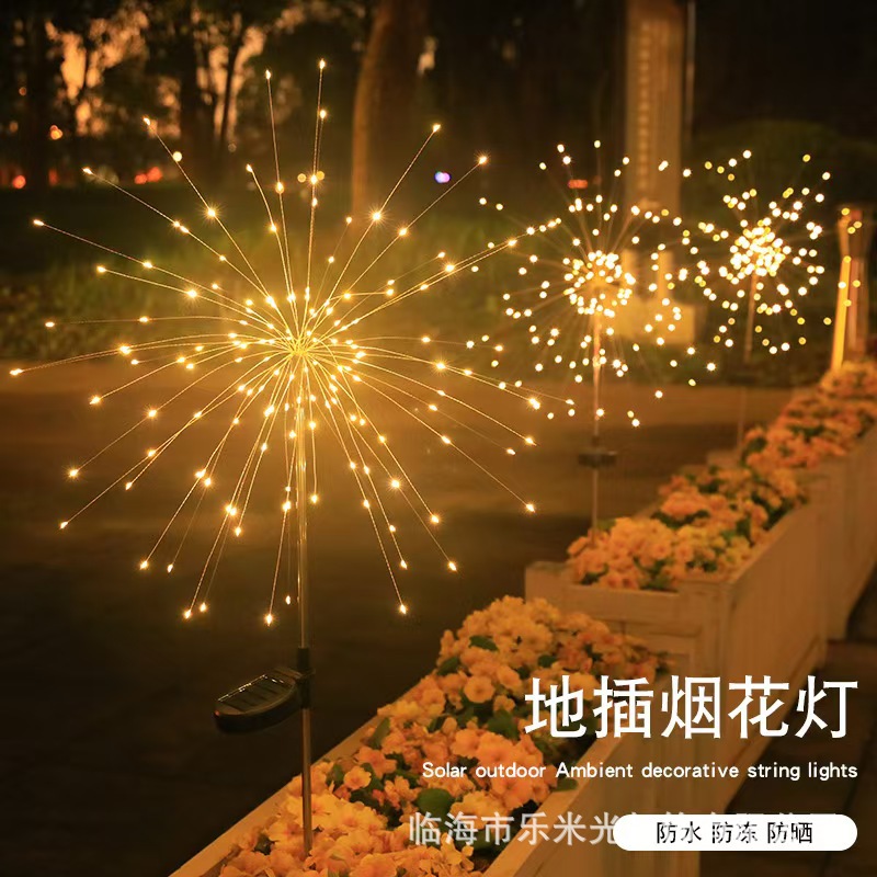 户外防水led太阳能庭院灯 DIY铜线烟花地插灯草坪花园圣诞氛围灯