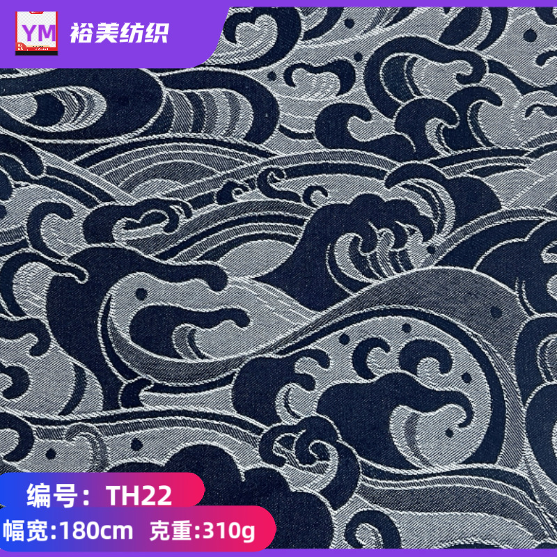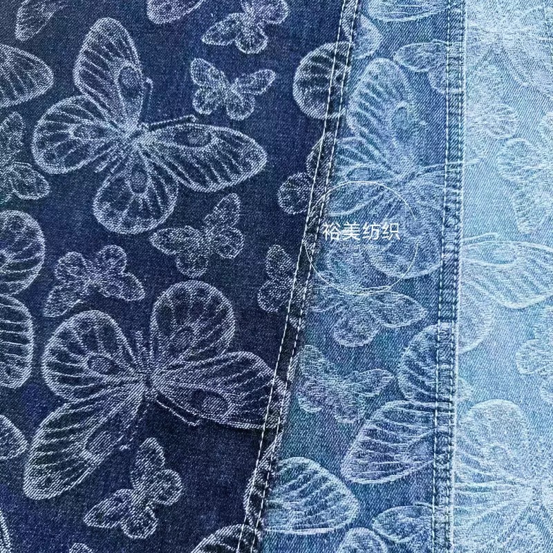 高品質のファッショナブルなバタフライジャカードデニム、快適なコート、ドレス、パンツ、靴、バッグ、ボックスウォッシュデニム生地