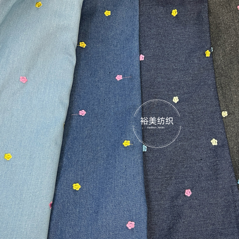 高品質の刺繍ジャカードデニム、洗濯不要、シワになりにくい、快適なジャケット、パンツ、子供服、靴、バッグ、箱、刺繍入りデニム生地