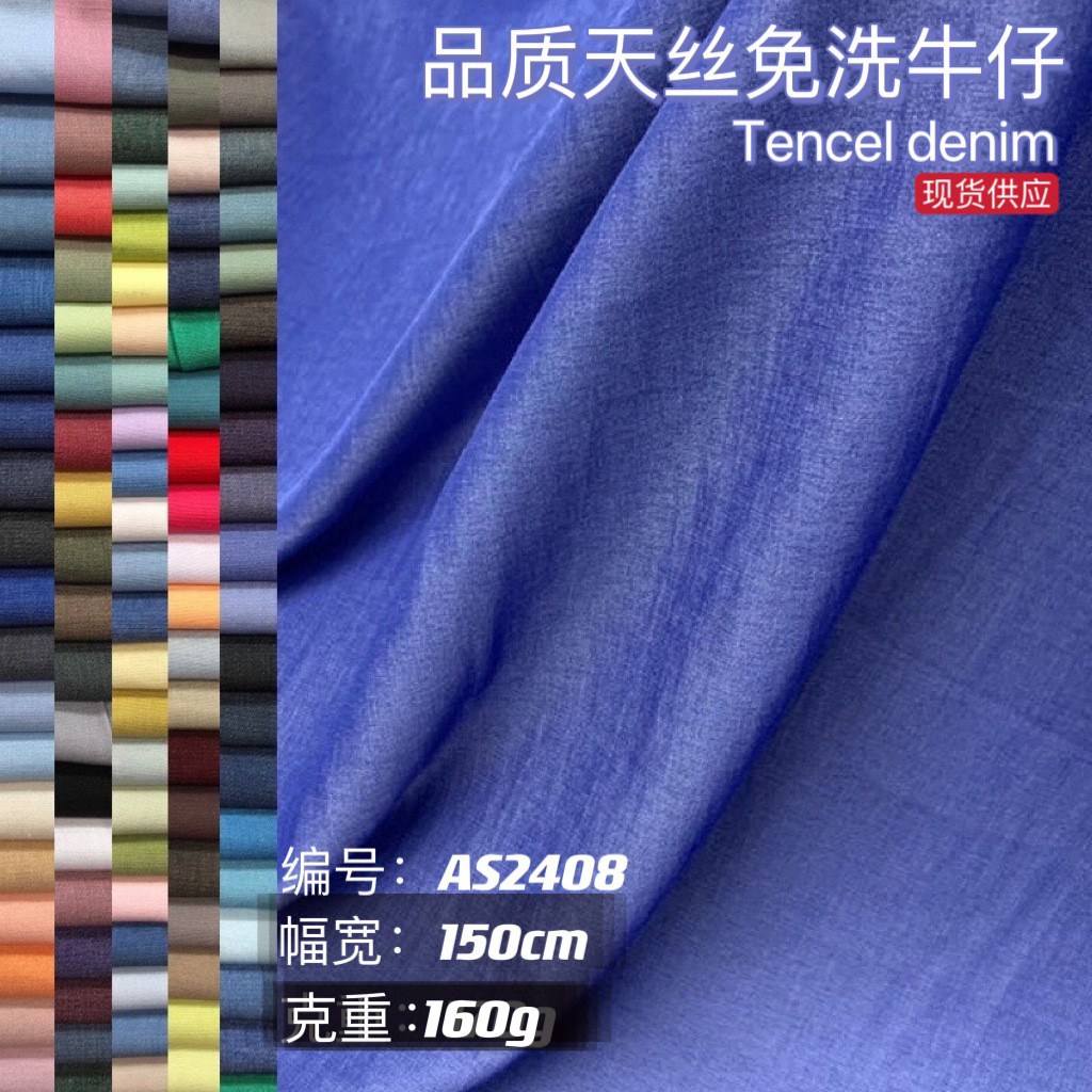 春夏品質試合紡織弾力カラーデニムワンピースズボンシャツ生地が色あせないデニム