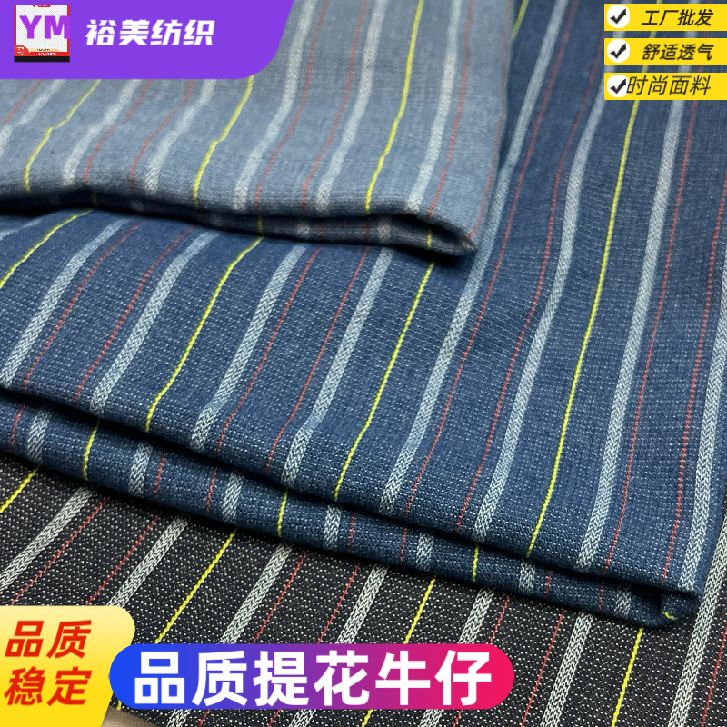高品質のストライプジャカードデニム、快適なジャケット、パンツ、ドレス、靴、バッグ、ボックス、洗濯不要のストライプデニム生地