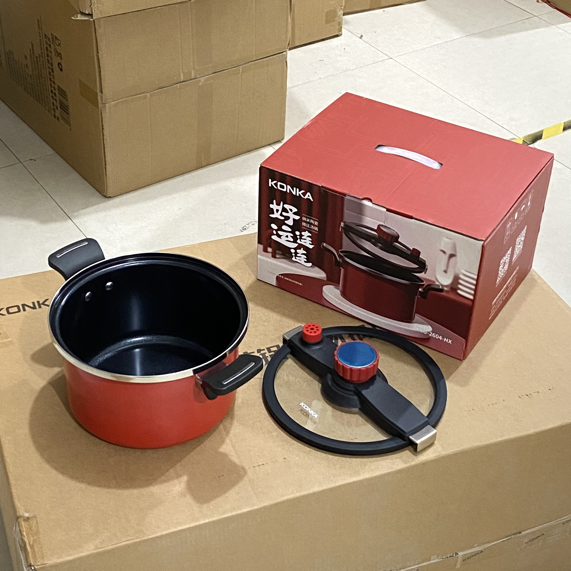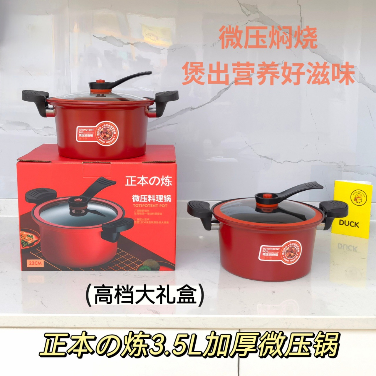 好运连连红色微压锅珐琅锅家用不粘锅煲汤锅双耳压力锅炖烫锅批发