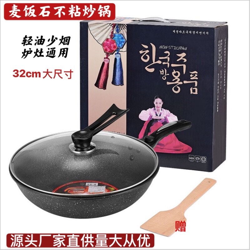 韓国式麦飯石炒め鍋鋳鉄無粘炒め鍋無油煙フライパン家庭用炒め鍋開業プレゼント卸売り
