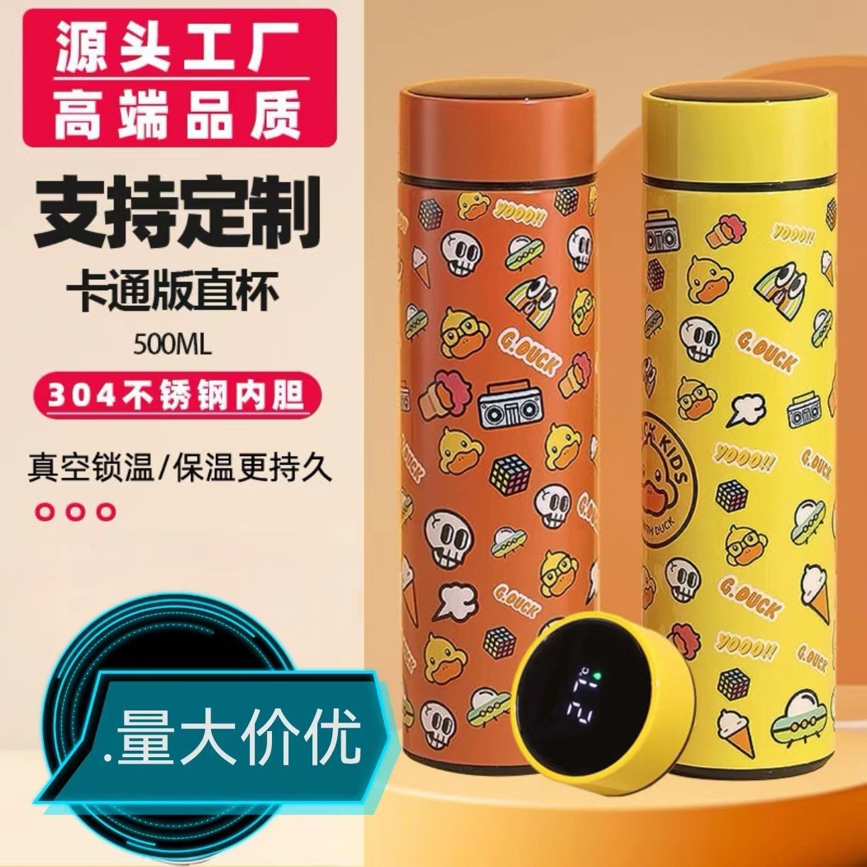 ハロー小黄鴨子供知能保温カップ304ステンレスタッチ表示温度カップ測温ビジネスプレゼント