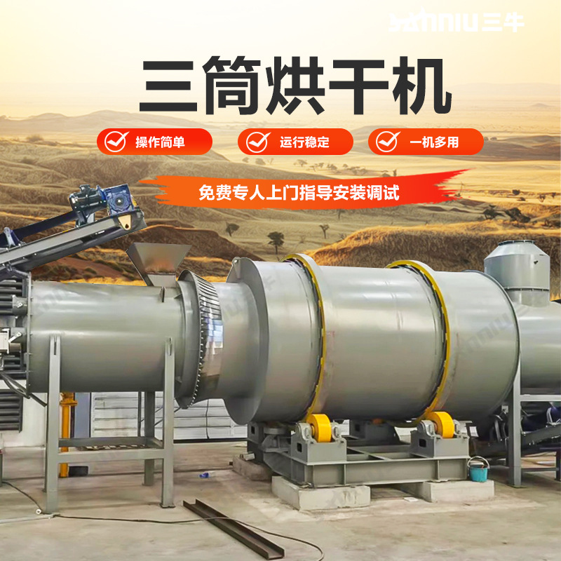 三筒乾燥機 大型泥質三回路乾燥機 石炭粉・鉱石粉・酒粕・おがくず・牛糞乾燥機