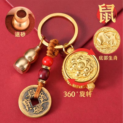 热销新款十二生肖招财聚宝盆转转随身挂饰汽车钥匙扣挂件创意礼品