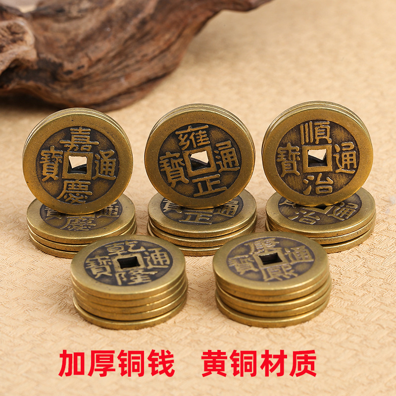 厚い五帝のお金の銅のお金の部品の真鍮の大きいサイズの順治康煕雍正乾隆嘉慶は敷居の六帝のお金を抑えます。