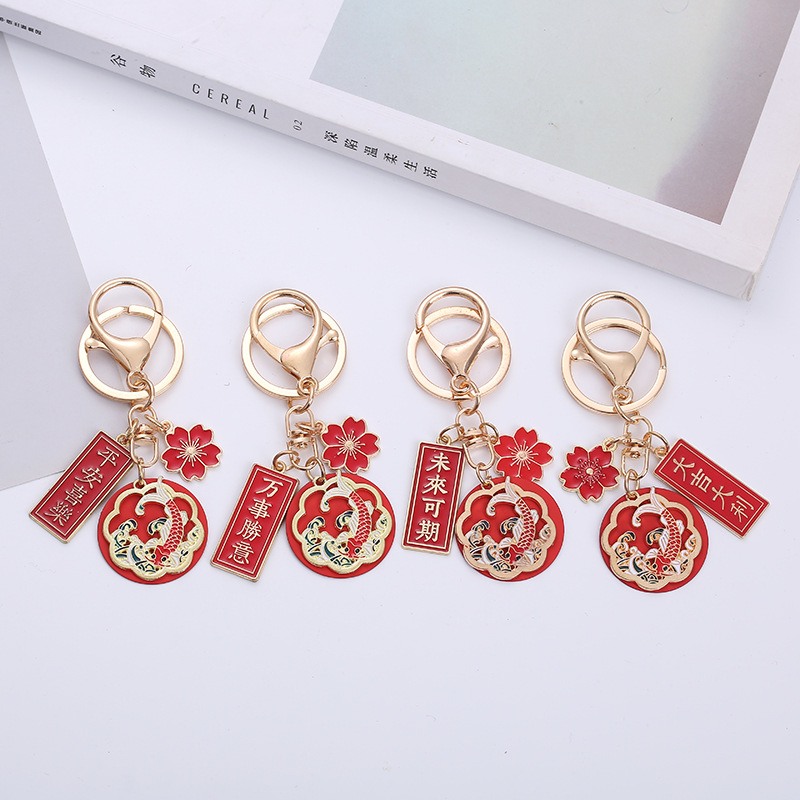 中国風の文字の自動車のキーホルダーのペンダントの平安の喜びの錦鯉の祝福の言葉の学生のカバンの鍵のペンダント