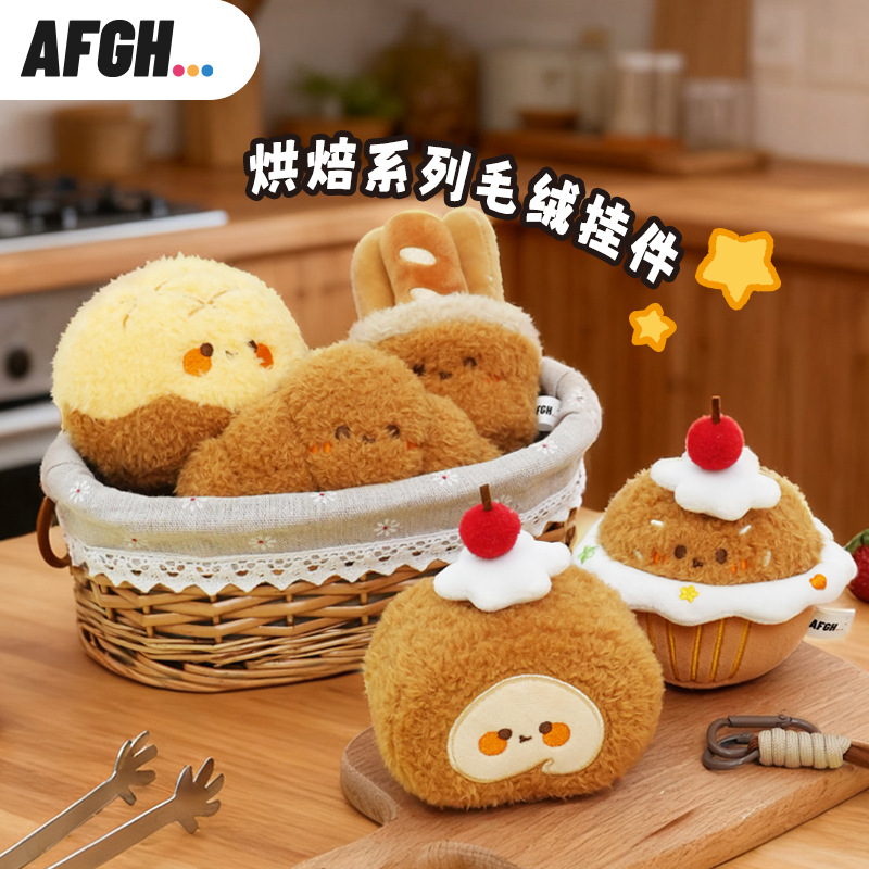 正版AFGH原创烘焙毛绒挂件创意牛角包法棍瑞士卷可爱卡通钥匙扣