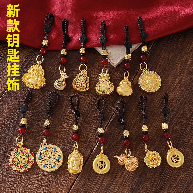 ゴールデンキーホルダーペンダント車のキーペンダントひょうたん五福完全仏金袋富の神日常使用小さなギフト