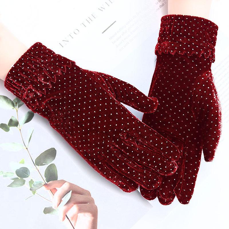 金糸ベルベット手袋 女性用 秋冬 暖かい アウトドア スポーツ フィットネス サイクリング パフォーマンス 春秋 伸縮性 卸売 レトロ