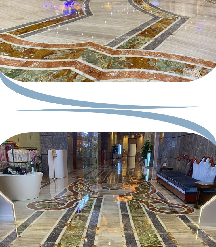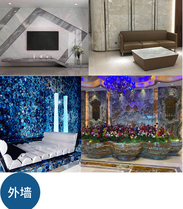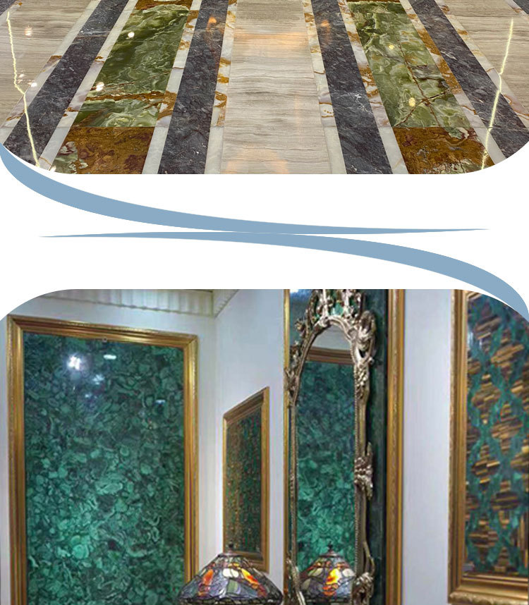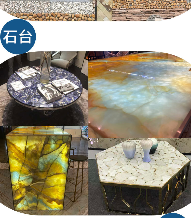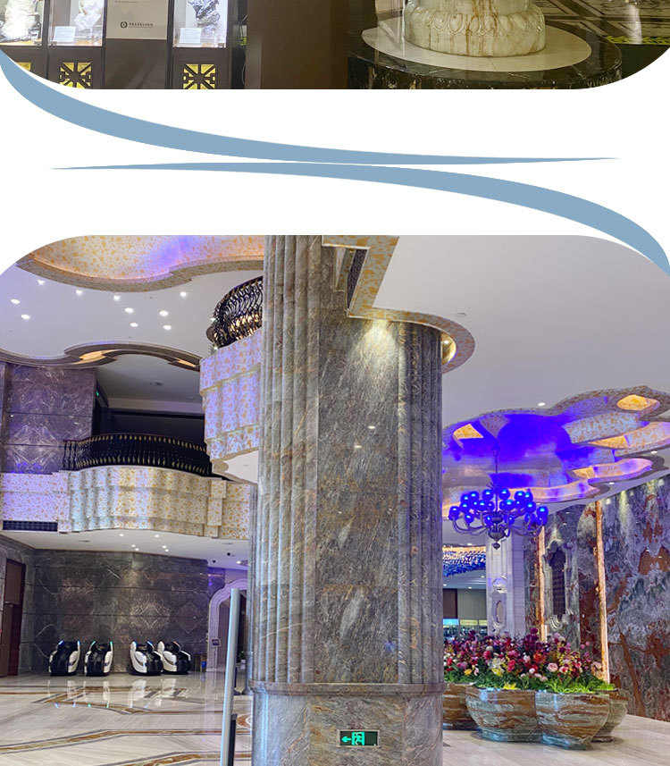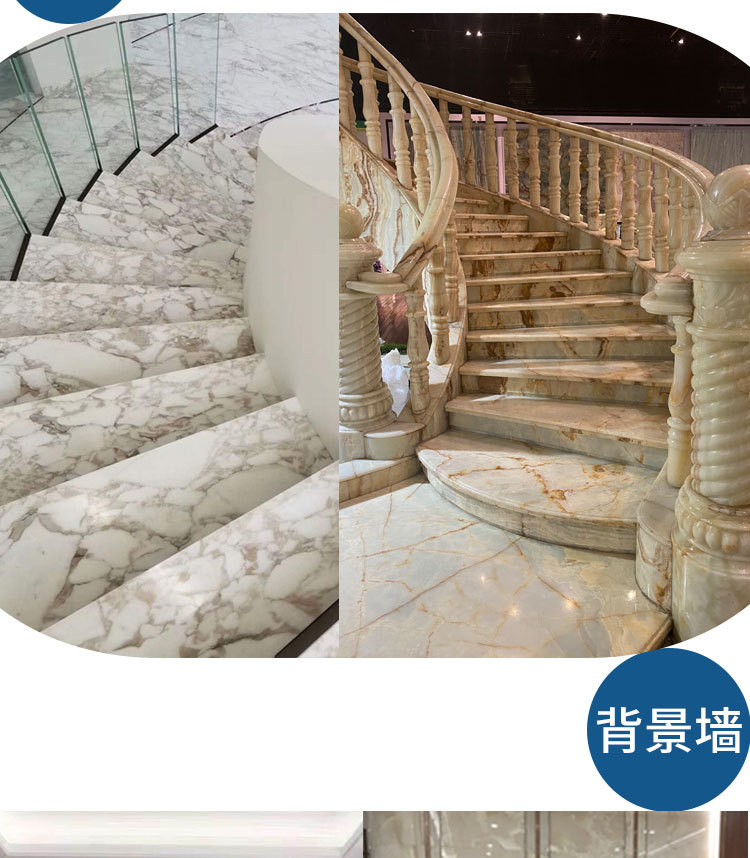天然青玉大理石高級石材、フランス風高級ヴィラの背景壁、透光性のある光電カウンタートップ、階段踏み板石材