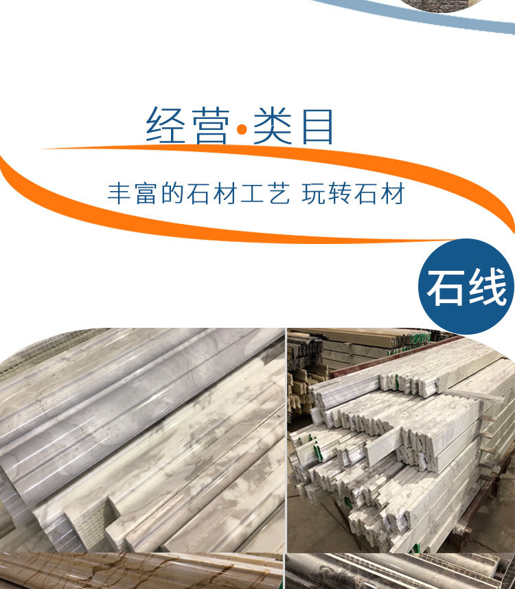 大理石巾木、巾木、一体型石巾木、装飾巾木、石線源工場