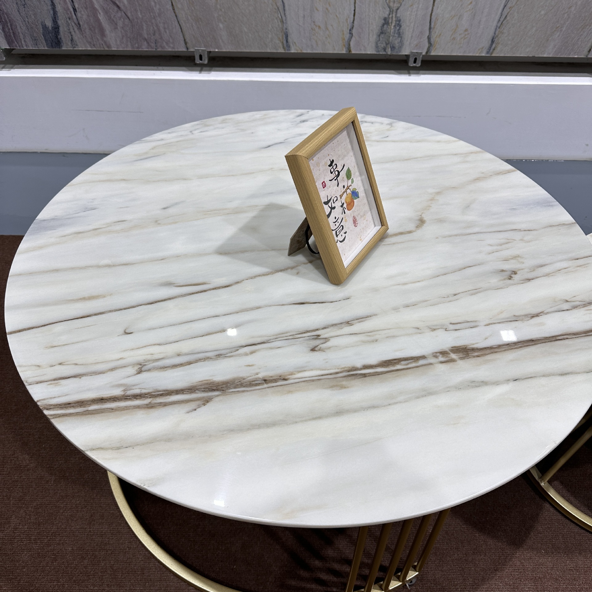 天然洞石大理石の白いダイニングテーブル、アンティーク調のコーヒーテーブル、シンプルで流行のヴィラのリビングダイニングテーブル、メーカー直販