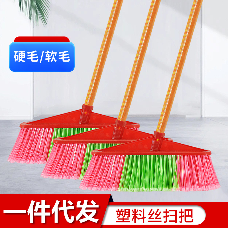 木製ハンドルプラスチックワイヤーほうき学校工場家庭用掃除ほうき硬い柔らかい毛屋外ほうきほうき