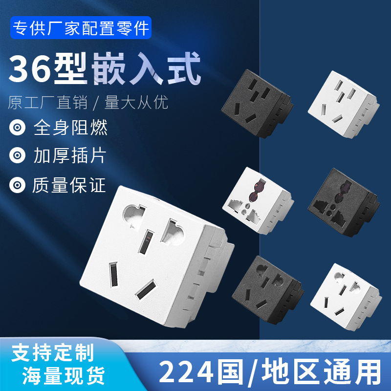 嵌入式冰箱插板36型国标五孔电源插座模块桌面电源接线插座