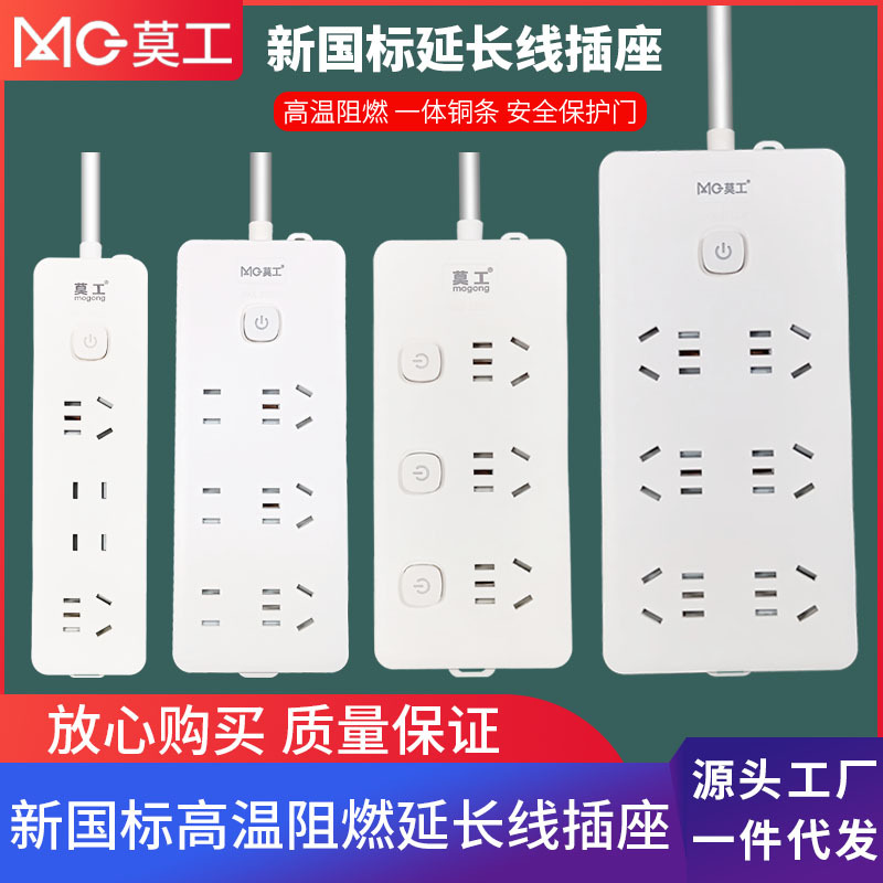 莫工現物純白延長線全銅条挿し込み制御スイッチ付き寮コンセント家庭用挿し板卸売り