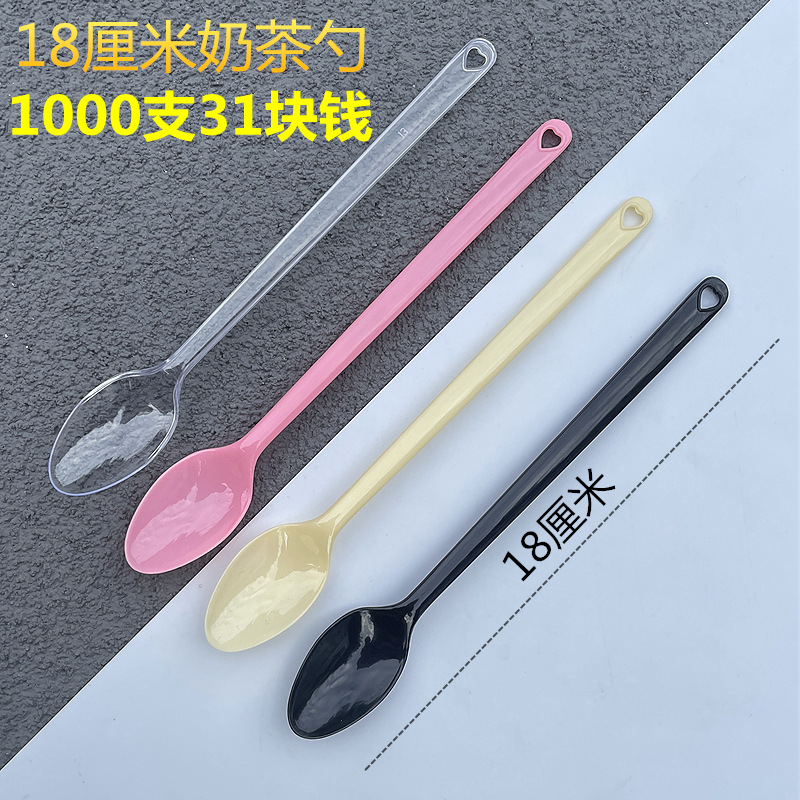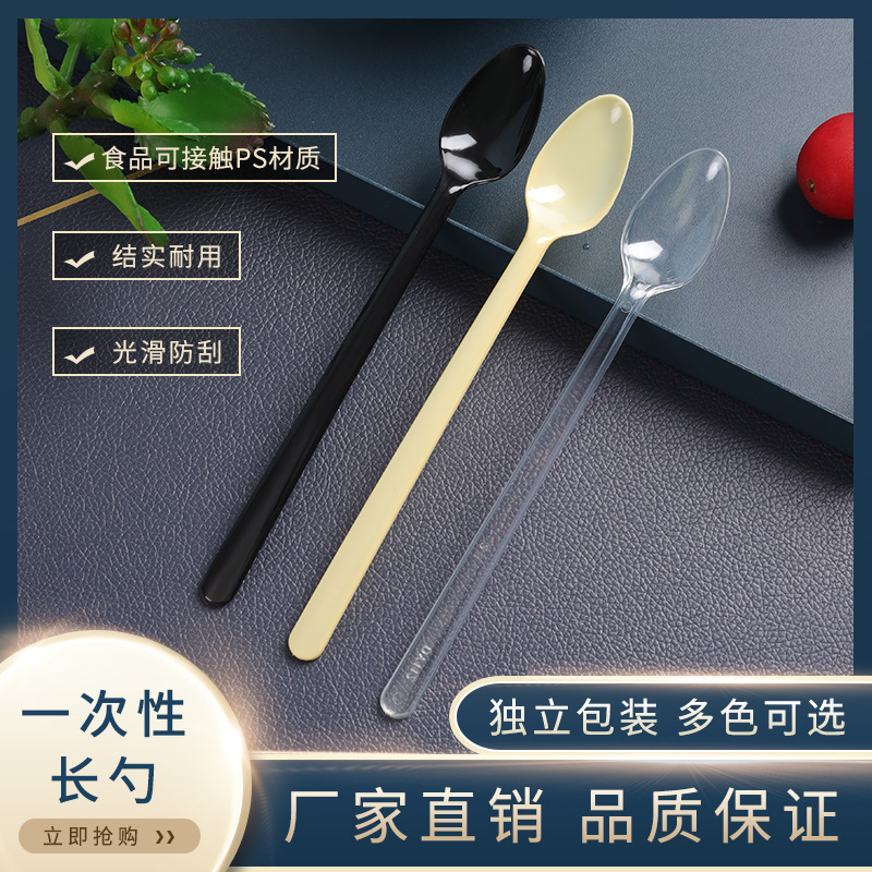 使い捨てスプーンの長い柄のフォークスプーンの焼き仙草は長い氷のスープのミルクティーのデザートの果物を厚くして商用の独立して包装します。