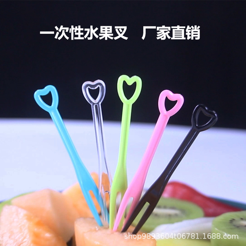 使い捨てフルーツフォーク独立包装フルーツラベル透明デザートプラスチック小フォーク両歯フォークKTVバー