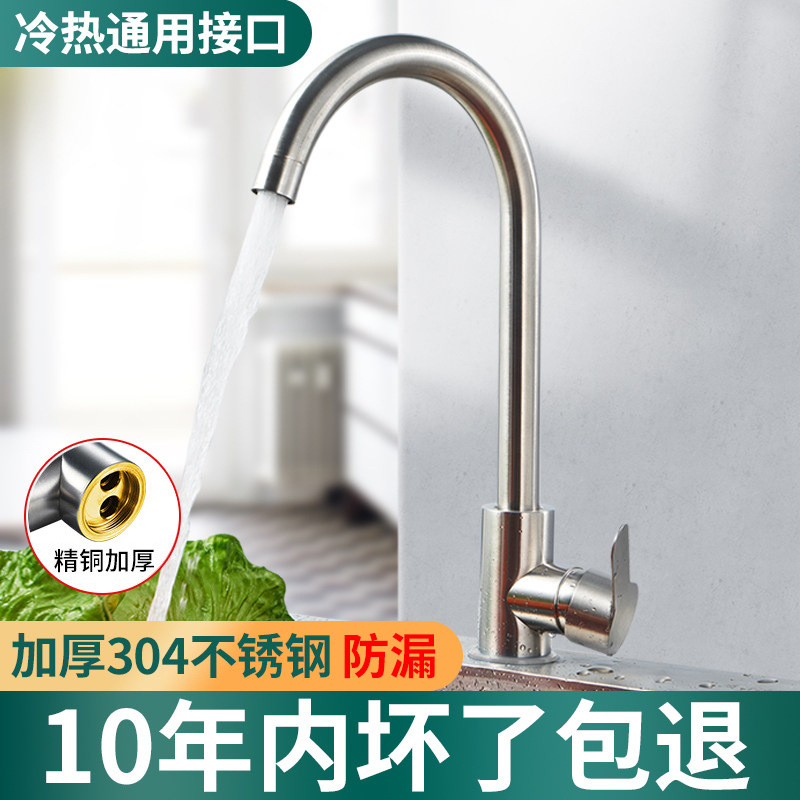 ステンレス製キッチン水栓 冷温水両用 家庭用2in1野菜洗いシンク シングル冷水洗面台 全銅製シンク