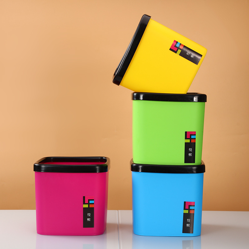 創意的な四角形のデスクトップのゴミ箱オフィスの書斎の客間の貯蔵箱のミニプラスチックの多彩な蓋の紙のかごがありません。