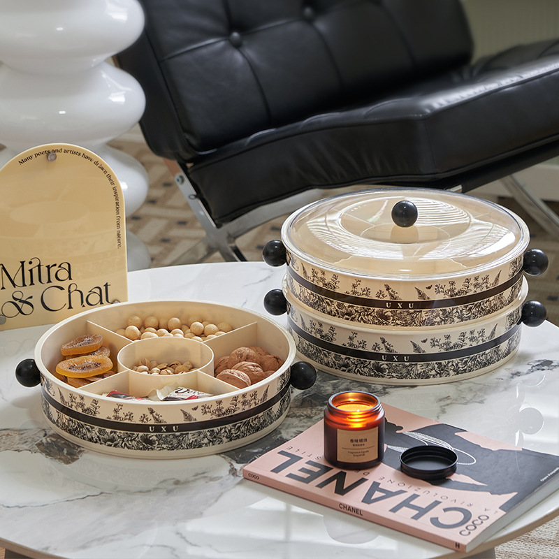 軽くて豪華なレトロなスタイルのドライフルーツボックス、自宅のリビングルーム用、見栄えの良いコンパートメント、キャンディー、スナック、軽食、スナック収納ボックス、フルーツプレート