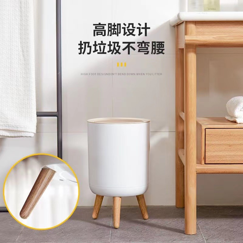 インス風和風クリエイティブ模造木目ゴミ箱ライト高級蓋付きゴミ箱北欧プッシュ式浴室ゴミ箱