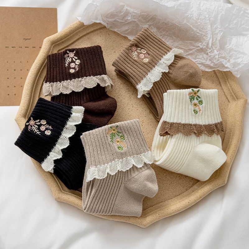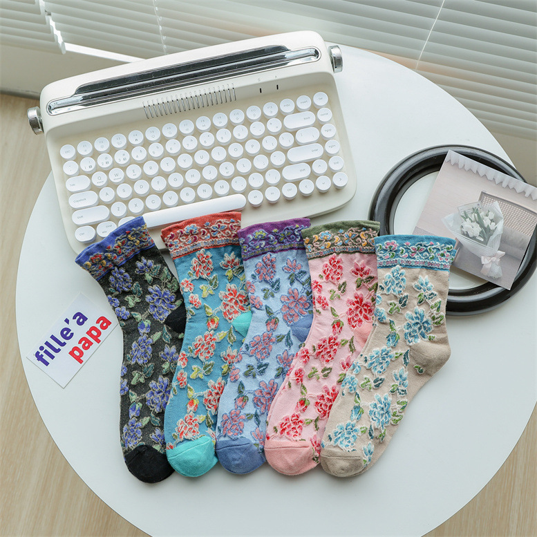 春秋季新款复古花纹中筒女袜