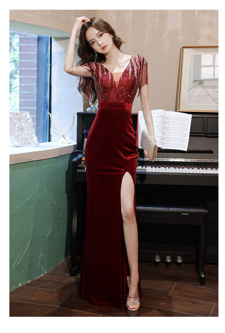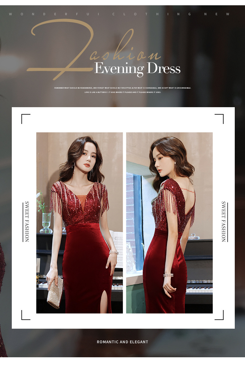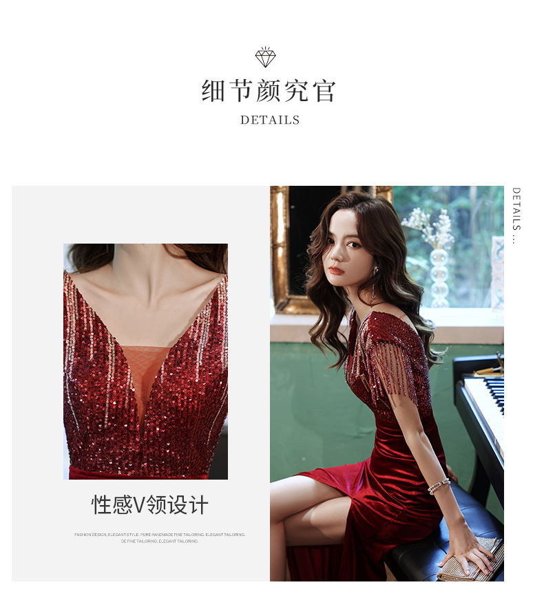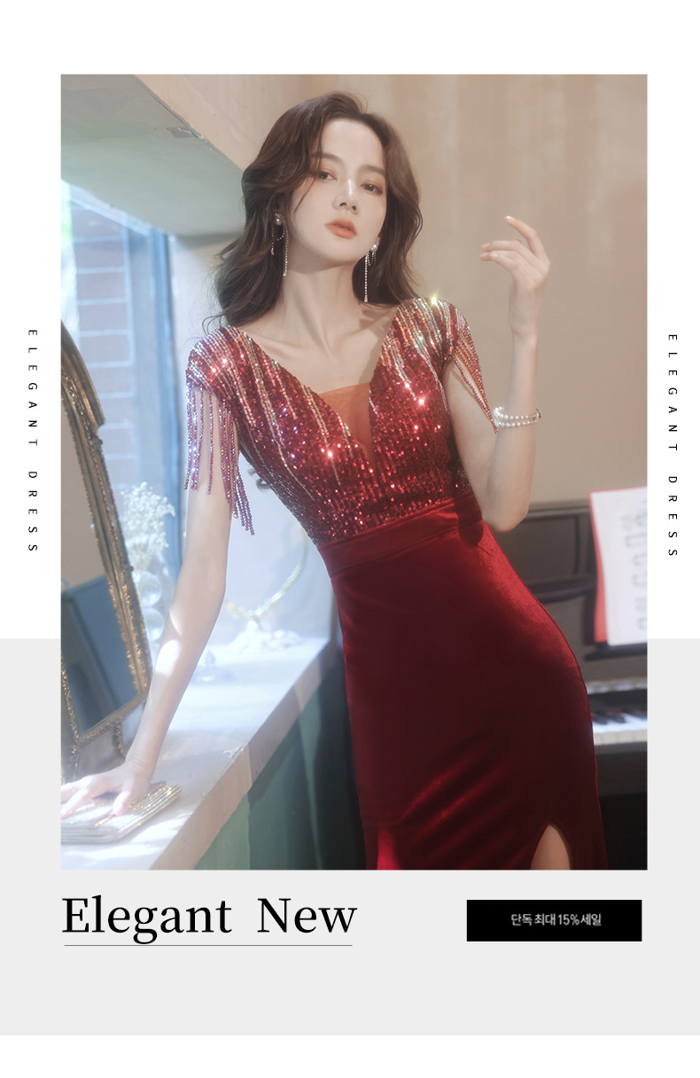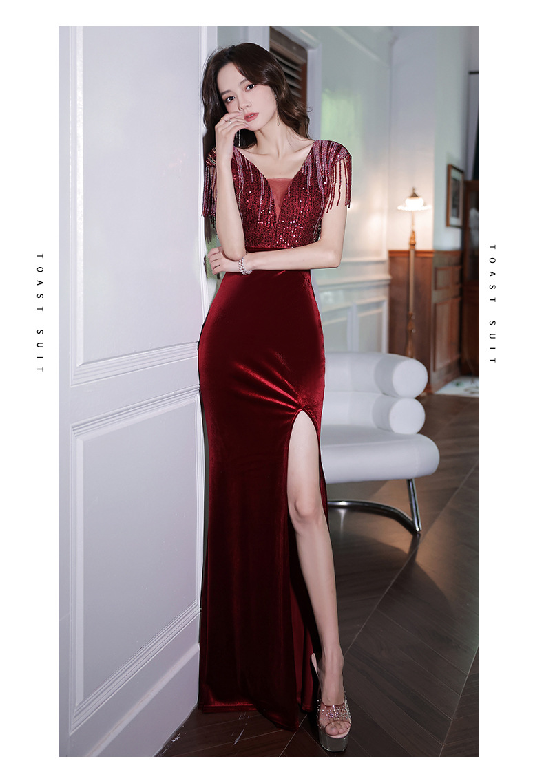 スパンコール付き宴会ドレス2025新作フィッシュテールロング丈おしゃれ着痩せ効果上品司会者風ネットセレブ同型イブニングドレス