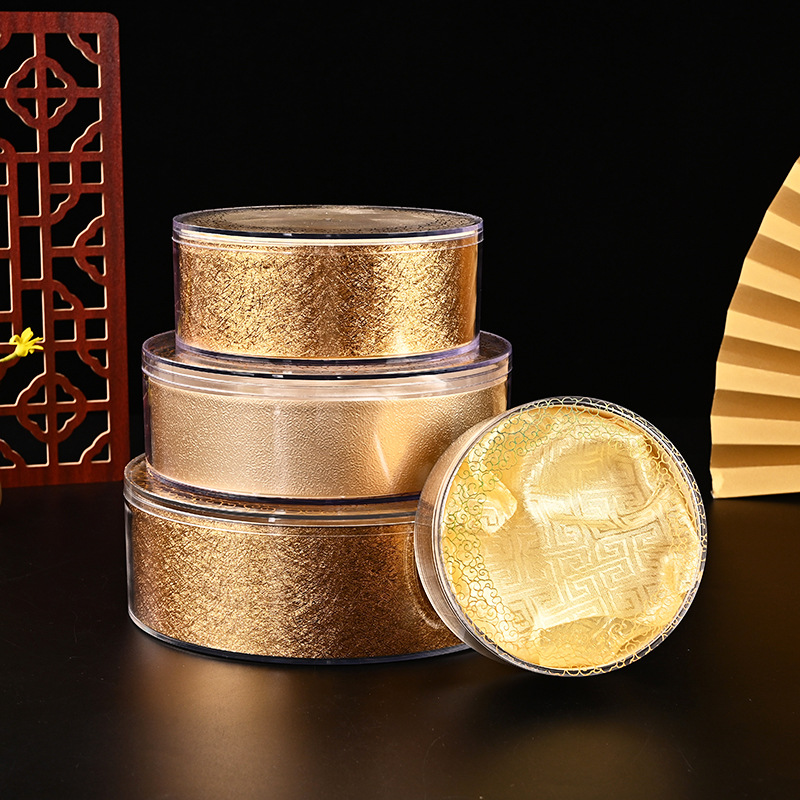 ツバメの巣の虫の草の円形のアクリルの贈り物の箱は簡単に大気の金の辺のプラスチックの贈り物の箱の貴重な材料の包装箱です。