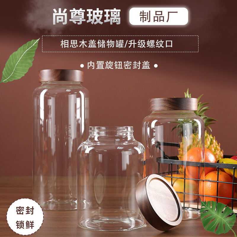 メーカー卸売りガラス密封缶貯蔵缶ガラス収納瓶アカシア木蓋ねじ口茶葉缶貯蔵缶