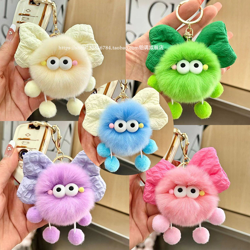 可爱蝴蝶结煤球精灵公仔书包包挂饰毛绒玩偶汽车钥匙扣挂件女礼物
