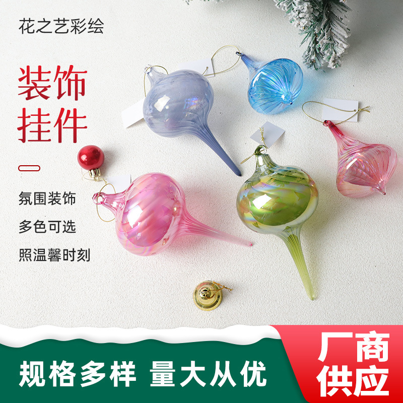 圣诞装饰品8-12CM玻璃彩绘创意吊球圣诞树场景布置玻精美璃球挂件