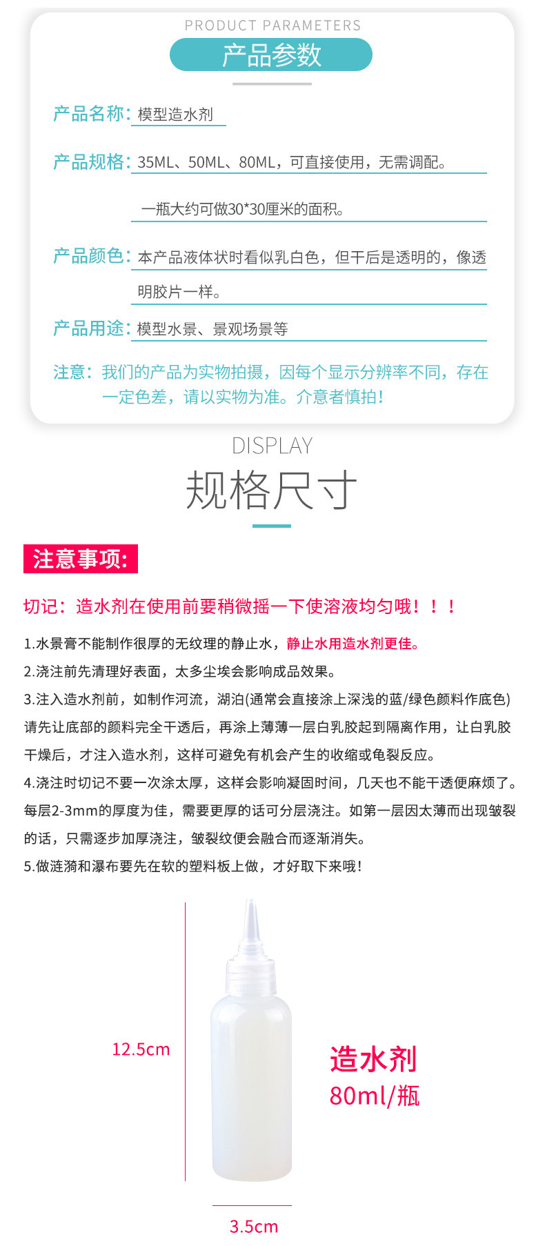 50ml水景膏沙盘建筑材料海洋湖水造景制作海水浪花效果