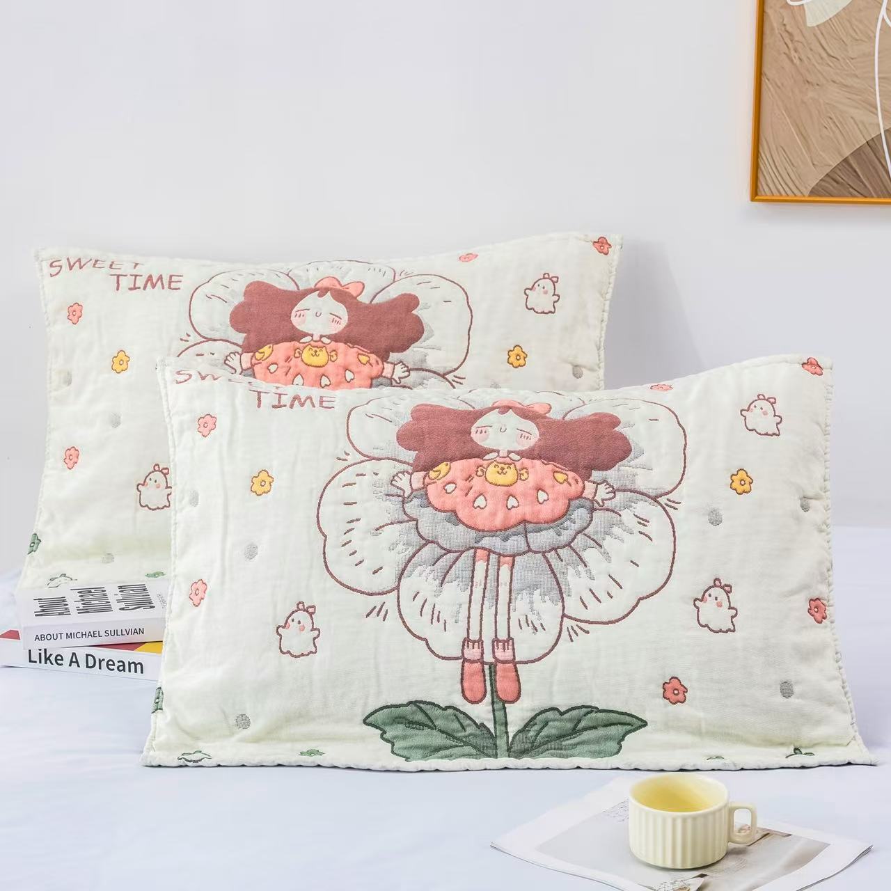 ガーゼの漫画の泡の枕のタオルの1対の少女の寝室の家庭の8階の枕のスカーフは厚い1人のかわいい枕の蓋をします。