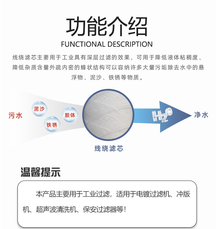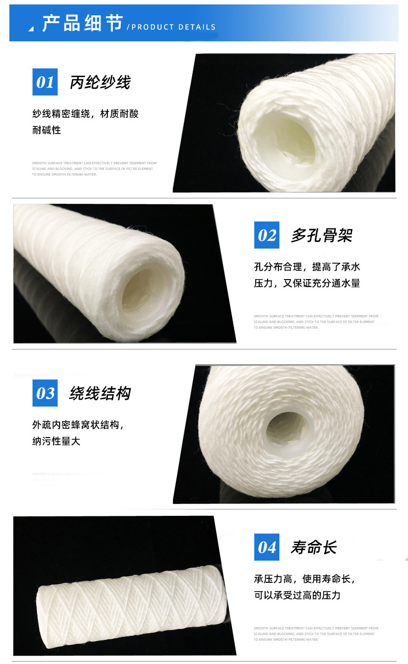 10寸/20寸/30寸/40寸线绕滤芯电镀过滤机PCB冲板机脱脂棉线滤芯