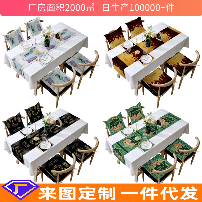 アマゾンの亜麻のテーブルの旗のムスリムの装飾の布のテーブルクロスの月の長いテーブルのタオルのテーブルのクッションの抱き枕の組み合わせ