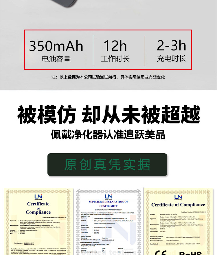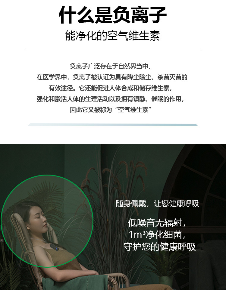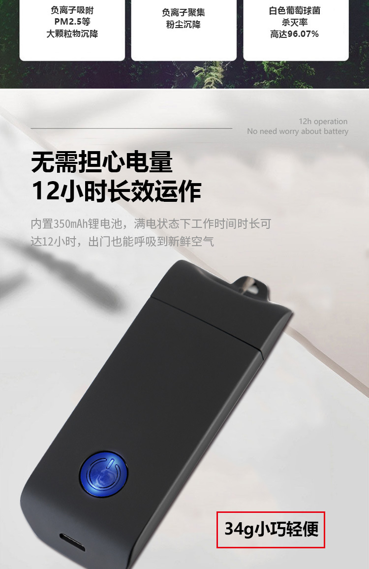 ミニネックレス携帯式空気清浄機は首掛け式マイナスイオン清浄機マイナスイオン殺菌卸売りを着用しています。