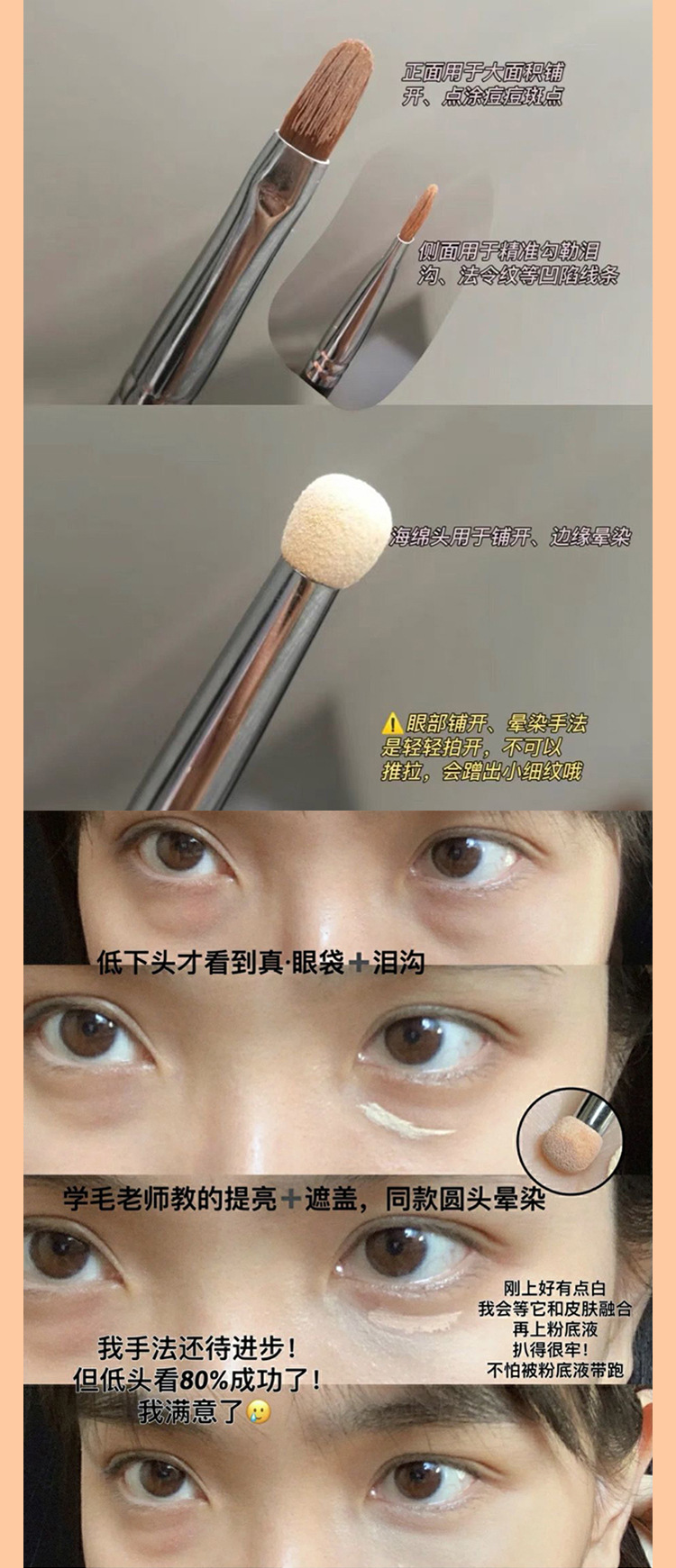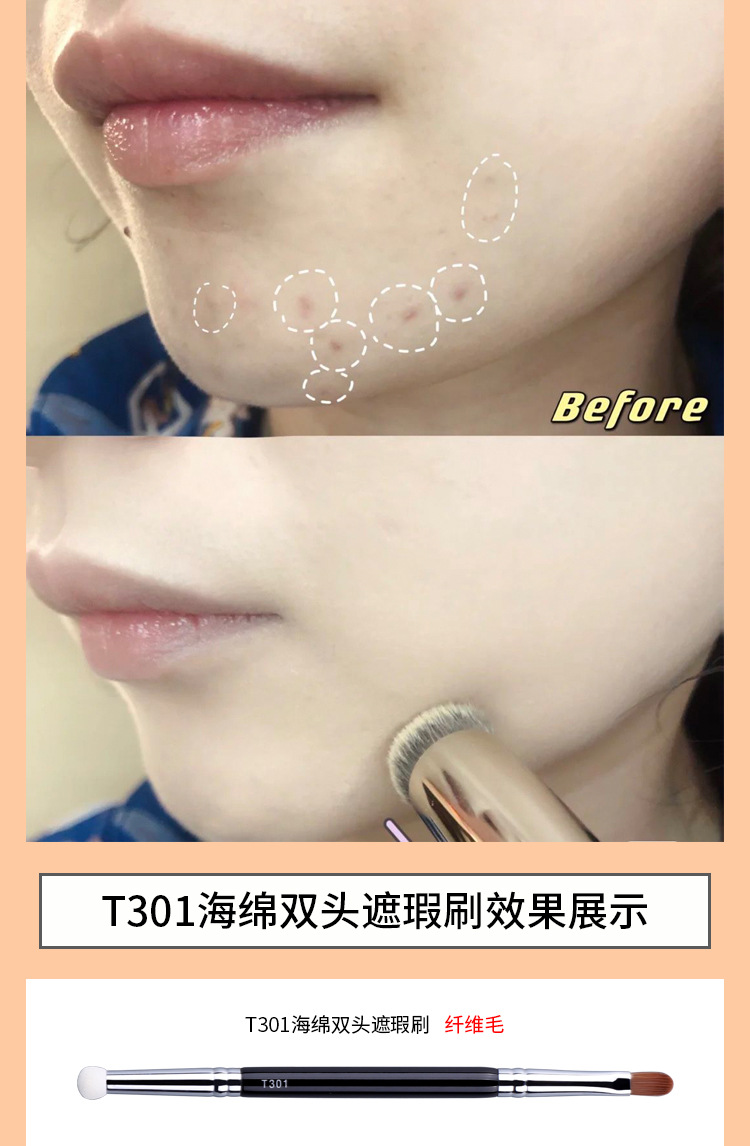 雲磁器t301二頭カバーブラシ毛先生と同じスポンジ涙溝くま目の細部のフラットヘッド化粧ブラシ