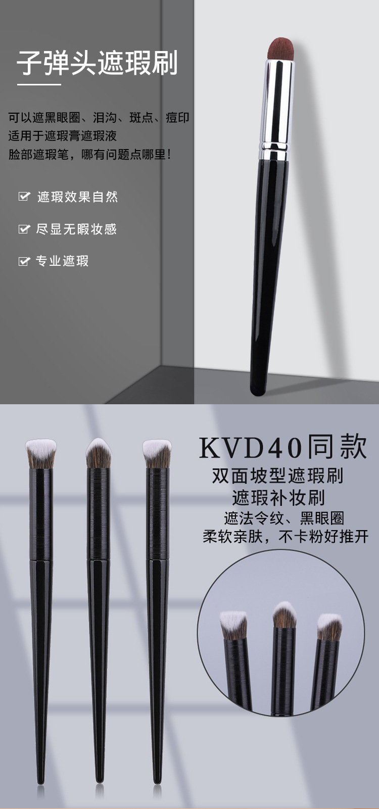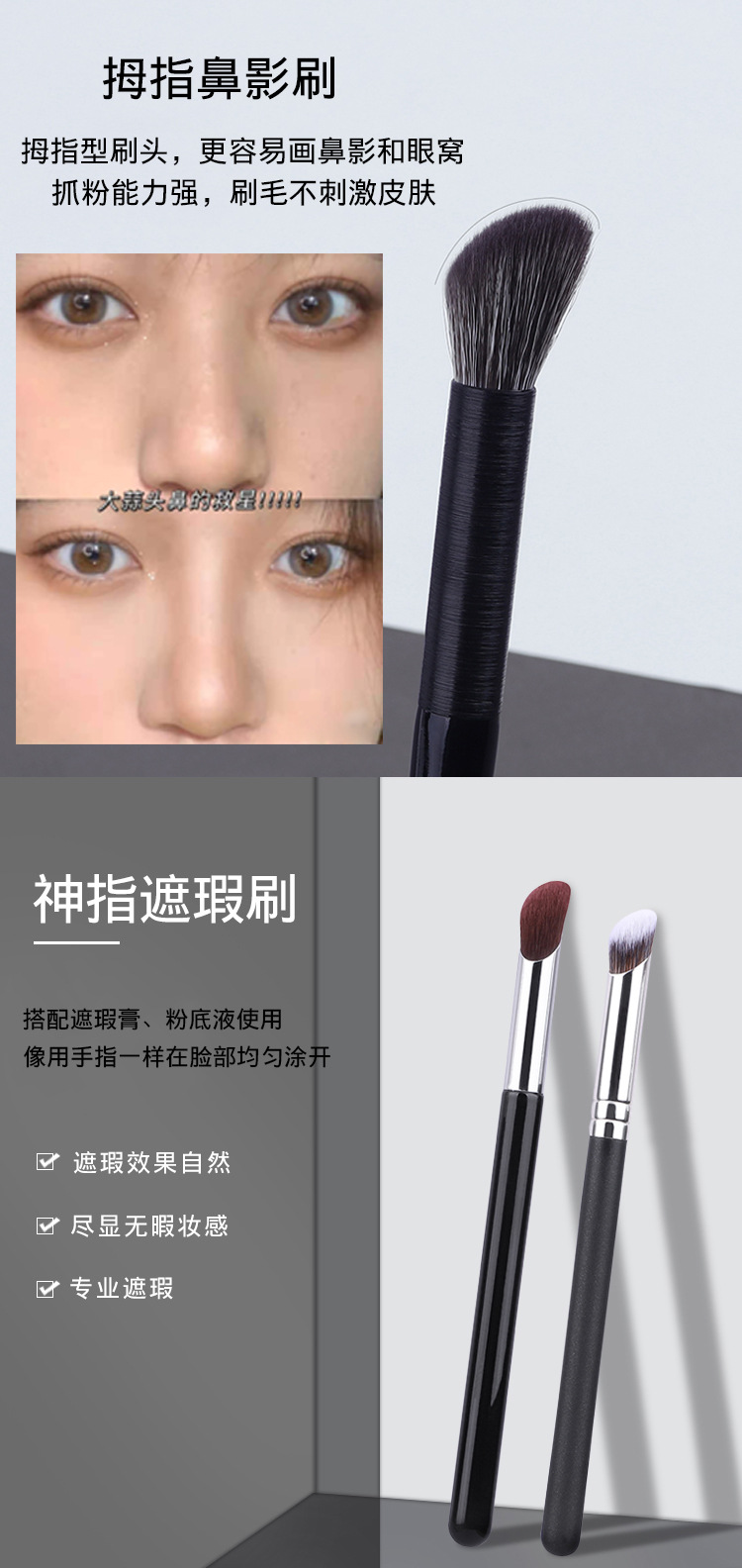 両面坂型コンシーラー化粧マスクペンアイライナーブラシ臥蚕眉ブラシ散らしファンデーションブラシ白黒繊維ツール