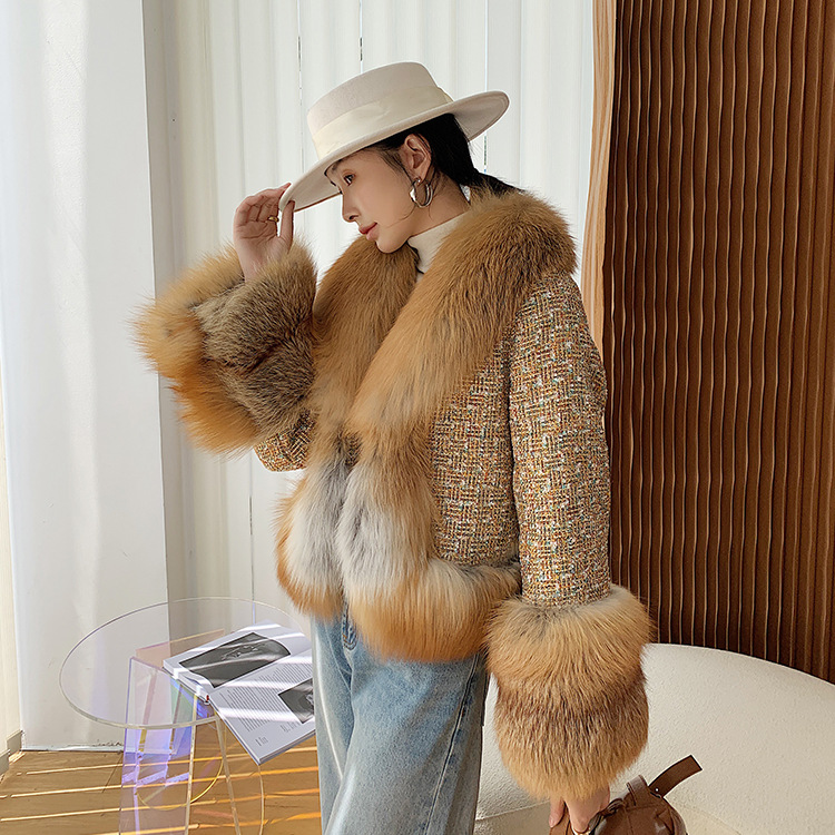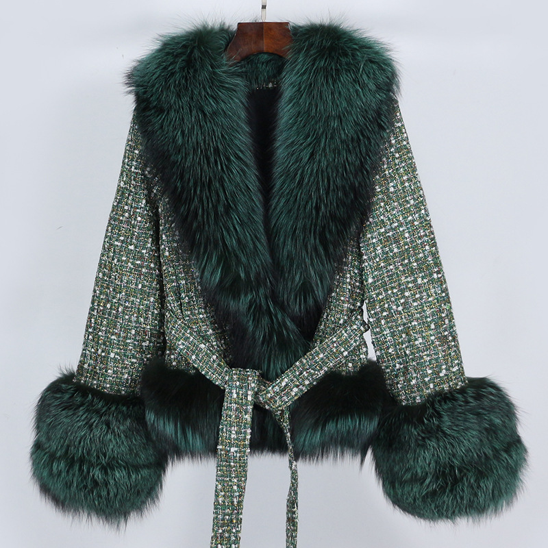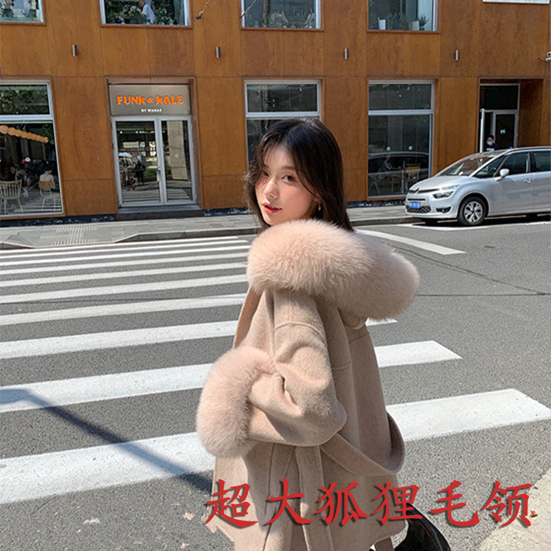 大毛领,进口涤棉外壳面料,貉子毛内胆